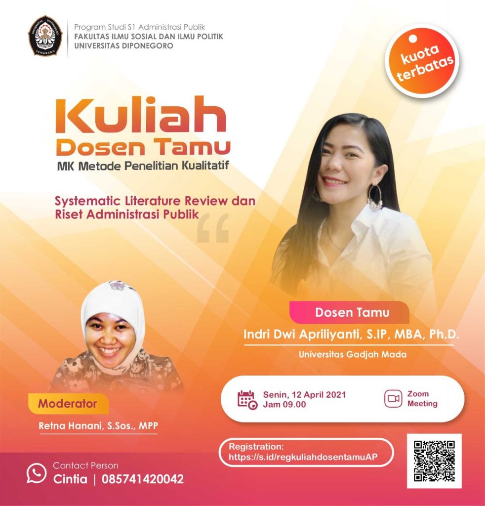 Kuliah Dosen Tamu MK Metode Penelitian Kualitatif Silahkan daftar melalui link berikut : https://s.id/regkuliahdosentamuAP Kuota terbatas.