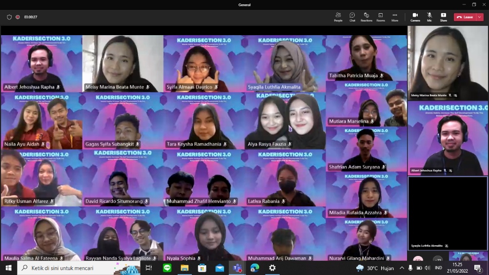 Through the Kaderisection 3.0 event, it is hoped that it will become a forum for intelligence and opening up insights about the flow and urgency of the regeneration activities themselves. Regarding the implementation, this activity is in the form of a semi-webinar-talk show with two speakers who are certainly competent and relevant to the material from the theme presented, namely Albert Jehoshua Rapha who is a student of the 2017 Public Administration Study Program and Meisy Marina Beata Munte who is a 2018 Faculty of Psychology student. The two speakers presented material with different focuses, namely the focus on the urgency of regeneration in general and regeneration from a psychological point of view.