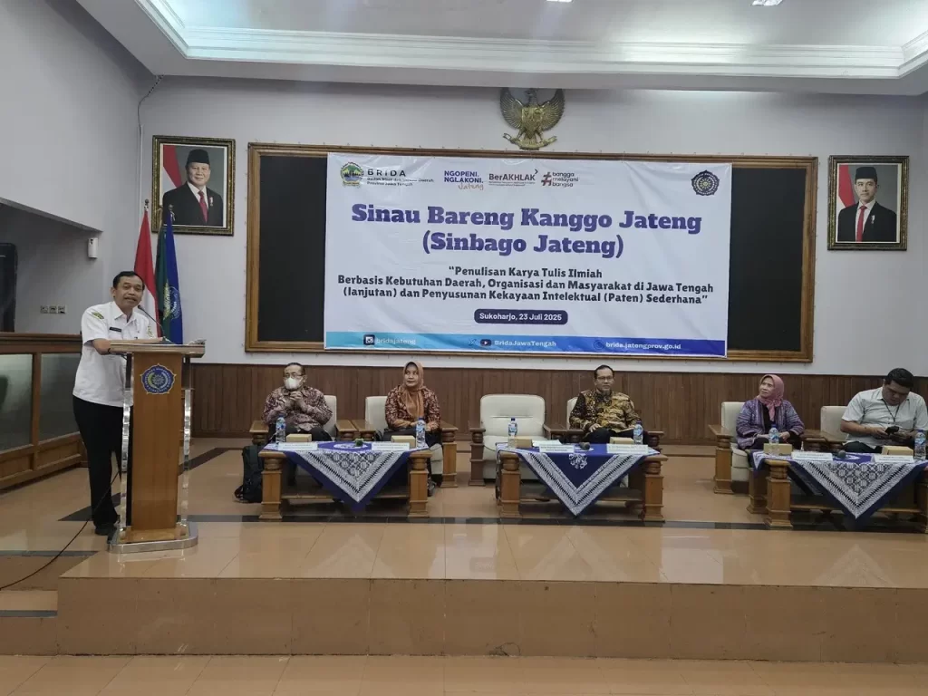Semarang – On July 23, 2025, Dr. AP. Dra. Tri Yuniningsih, M.Si., Head of the Department of Public Administration at FISIP Diponegoro University, contributed as a speaker as well as a mentor in an event titled “SINBAGO JATENG” (Sinau Bareng Kanggo Jateng), organized by the Regional Research and Innovation Agency (BRIDA) of Central Java Province.