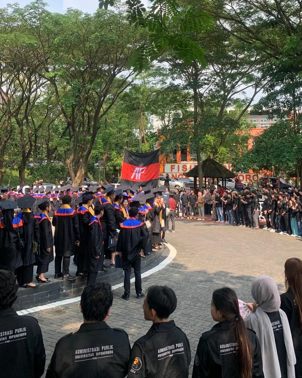 (Semarang, 06/05) — In celebration of graduation and to create an unforgettable experience for the graduates, this year’s 178th Graduation Day featured a fresh and exciting twist. The Student Association of Public Administration, Universitas Diponegoro (HMPS Administrasi Publik), brought forth a new and creative innovation unlike those of previous years. Carrying the spirit of collaboration and collective euphoria, the Department of Human Resource Development (PSDM) organized a graduation parade in direct collaboration with the Tifosi Administrasi Publik.