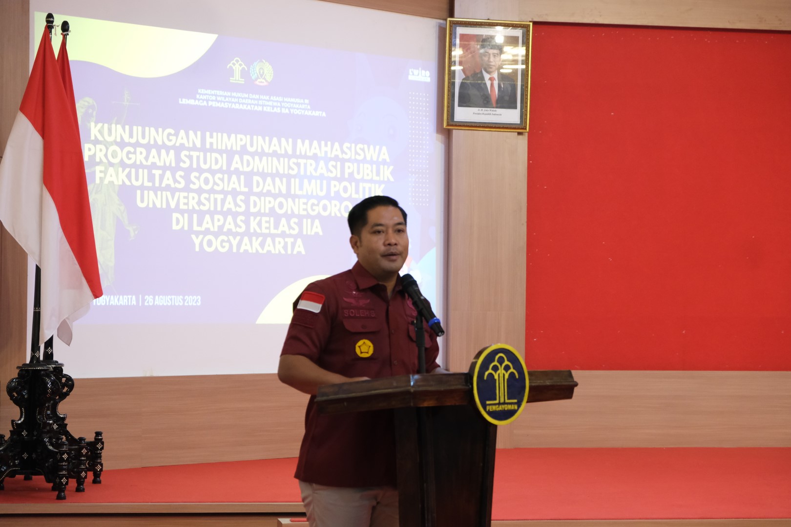 Pada tanggal 26 Agustus 2023, himpunan mahasiswa jurusan Administrasi Publik Universitas Diponegoro melaksanakan kunjungan ke Lembaga Pemasyarakatan (Lapas) Kelas II A Wirogunan Yogyakarta. Lapas Wirogunan berperan penting sebagai Unit Pelaksana Teknis (UPT) di bawah pengawasan Kantor Wilayah Kementerian Hukum dan Hak Asasi Manusia (Kemenkumham) Daerah Istimewa Yogyakarta (DIY). Terletak di Jalan Tamansiswa Nomor 6 Yogyakarta, dengan luas area sekitar 3,8 hektar dan berisi 498 narapidana. Kegiatan ini bertujuan untuk memberikan wawasan mendalam kepada para mahasiswa mengenai sistem penegakan hukum dan pemasyarakatan yang sedang berkembang di Indonesia. Para mahasiswa tiba di Lapas Wirogunan Wirogunan, didampingi oleh Renata Jati Nirmala, S.IAN., MPA, dan Moh. Nurul Huda, S.AP., MPA. Kami disambut dengan ramah oleh Kepala Lapas Kelas II A, Soleh Joko Sutopo, A.Md.I.P., S.H., M.H., yang juga bertindak sebagai narasumber utama pada acara tersebut.