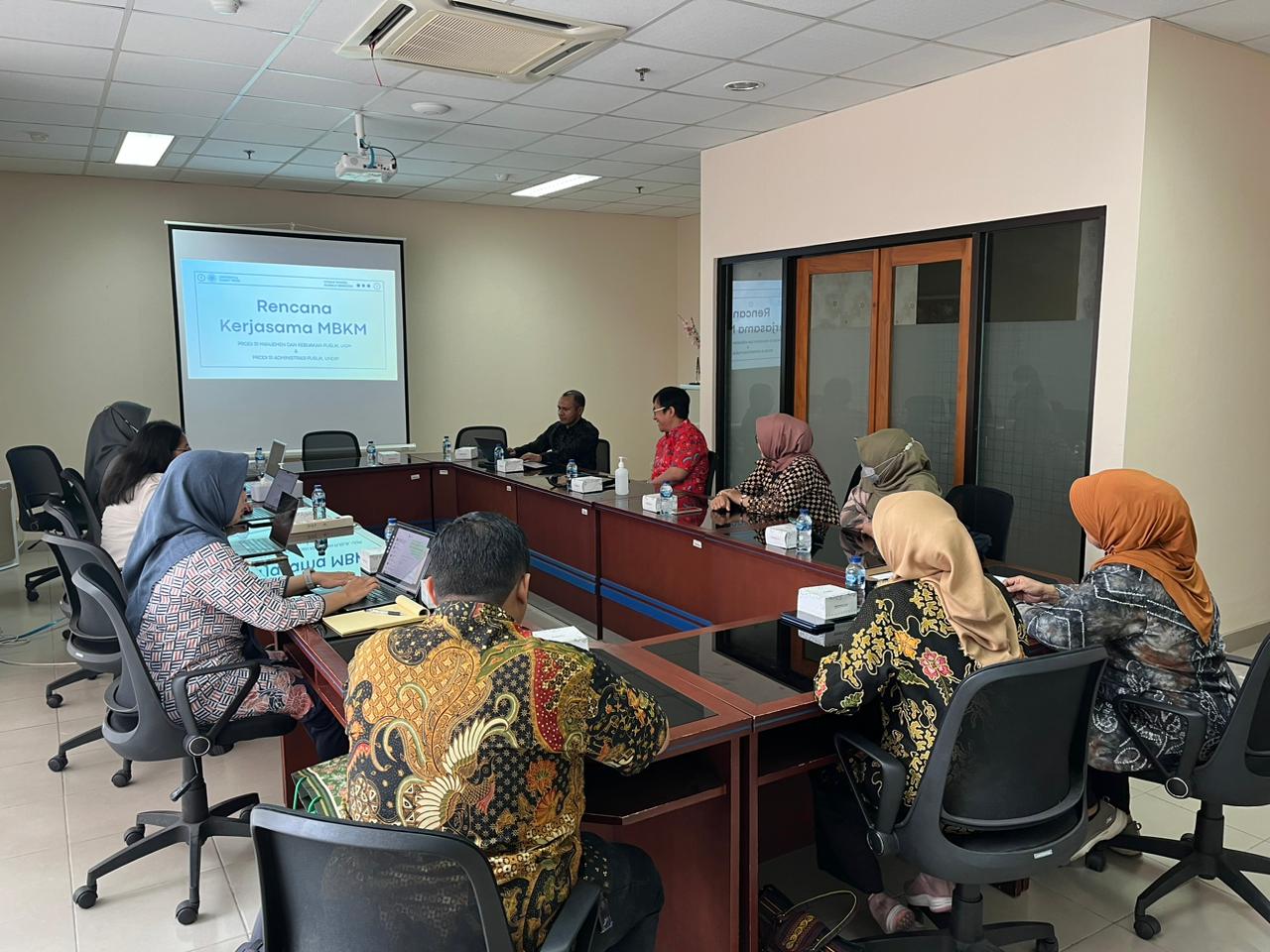 Pada tanggal 24 Oktober 2023 rombongan dosen Departemen Administrasi Publik FISIP UNDIP mengadakan kunjungan untuk menindaklanjuti PKS kedua PTN . Rombongan UNDIP dipimpin Ketua Departemen AP Dr. AP. Dra.Tri Yuniningsih, MSi, dan didampingi Kaprodi S1 Dra. Maesaroh, MSi, Sekprodi S1 Amny Zarkasi, S.Sos, MSi, Kaprodi S2 MAP Dr. A. Rina Herawati, MSi dan Kaprodi S2 DAP Dr. Retno Sunu Astuti, MSi. Kunjungan diterima Sekdept MKP Fisipol UGM,dihadiri langsung Kaprodi S1 dan Kaprodi S3. Diskusi membahas tentang kerjasama MBKM untuk Prodi S1 dan kegiatan lain yang bisa dikerjasamakan untuk prodi S1 dan S3.