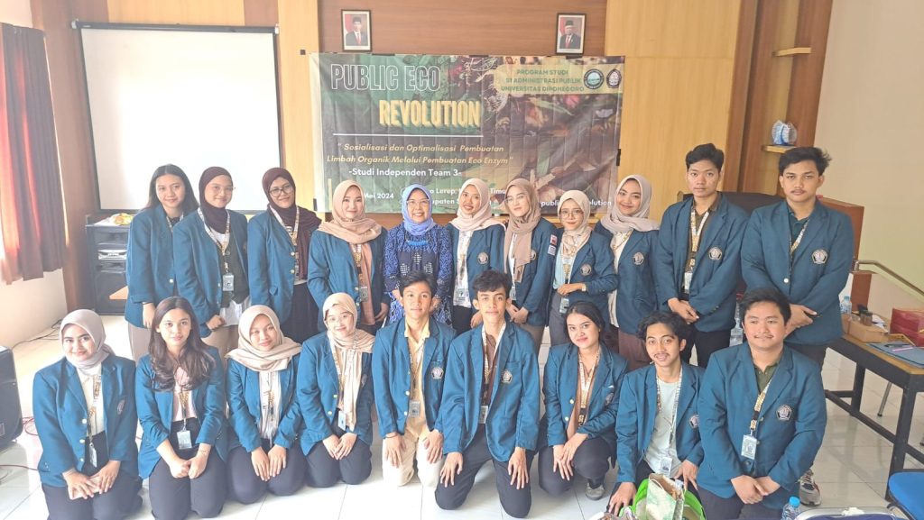 Minggu, Tanggal : 19 Mei 2024 Mahasiswa Prodi S1 Administrasi Publik peserta Studi Independen melaksanakan pengabdian masyarakat di Desa Lerep, Kec. Ungaran Barat, Kab. Semarang. “Topik yang diangkat yaitu mengenai Mitigasi Bencana Penumpukan Sampah : Optimalisasi Pengelolaan Limbah Organik melalui Pembuatan Eco Enzym “. Kegiatan dilakukan melalui sosialisasi pembuatan Eco-Enzyme kepada Masyarakat di Desa Lerep. Target atau sasaran peserta kegiatan adalah para anggota UMKM, PKK, KPMD dan Karang Taruna dari Desa Lerep, mereka sangat antusias mengikuti kegiatan. Selaku Nara sumber kegiatan adalah Dr. Dra. Kismartini, MSi sekaligus sebagai dosen pendamping kegiatan. Kegiatan ini diikuti oleh 19 orang mahasiswa Prodi S1 Administrasi Publik semester 4 (Angkatan 2022), selaku ketua tim adalah Muthia Fakhira Tedja.