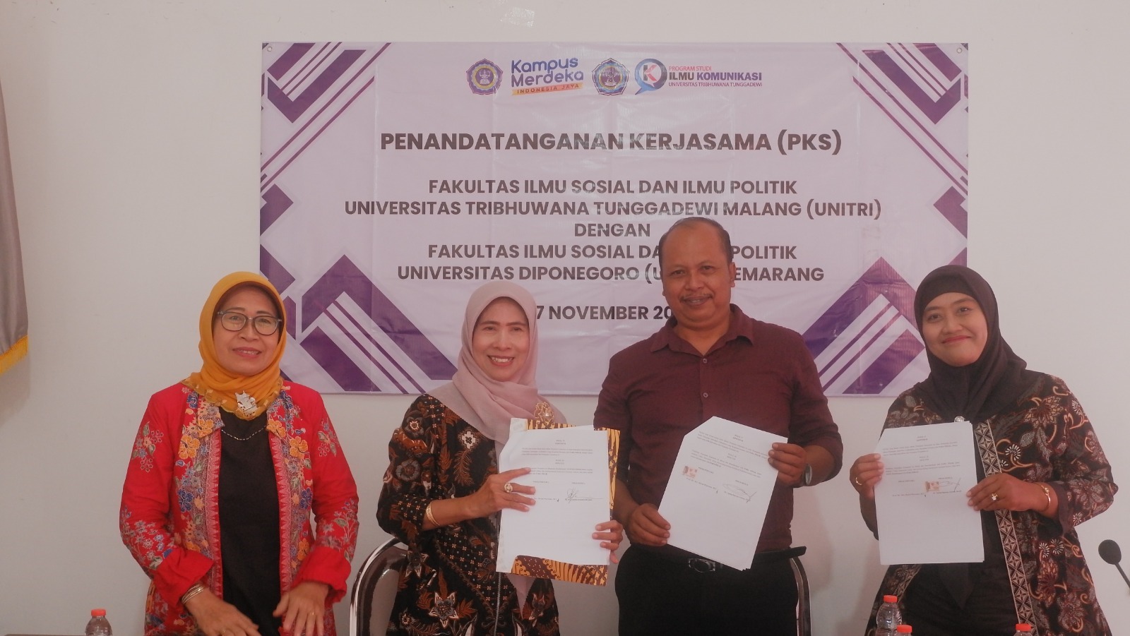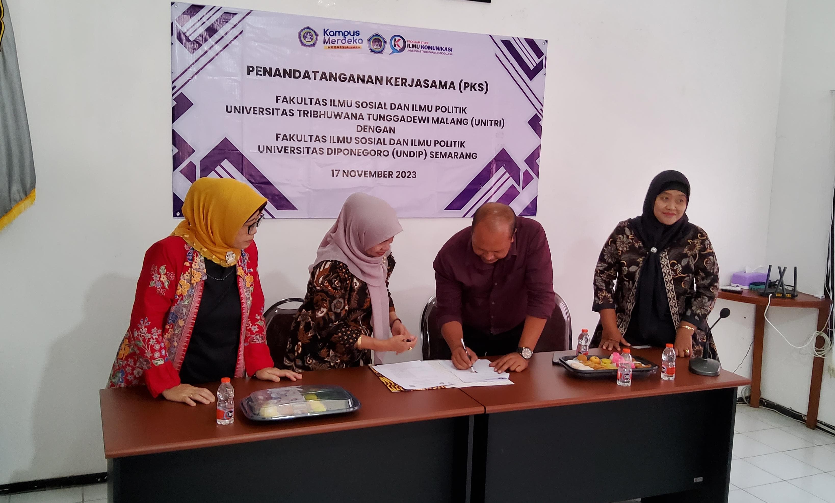 Pada tanggal 17 November 2023 telah ditandatangani Perjanjian Kerja Sama antara FISIP Universitas Diponegoro dengan FISIP UNITRI dalam Tri Dharma Perguruan Tinggi.Rombongan tim FISIP UNDIP terdiri dari Ketua Departemen Administrasi Publik Dr. AP. Dra. Tri Yuniningsih, MSI, Kaprodi S1 Dra. Maesaroh, MSi dan Sekprodi S1 Amny Zarkasi, S.Sos, MSi. Sementara dari Universitas Islam Malang dipimpin langsung oleh Dekan FISIP UNITRI Dr. Agung Suprojo, S.Kom., M.AP