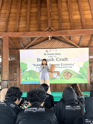 Si Nomi merupakan kegiatan yang dilakukan secara rutin oleh departemen Ekonomi Kreatif HMPS Administrasi Publik. Kegiatan ini memiliki tujuan sebagai sarana edukasi bagi mahasiswa khususnya mahasiswa Administrasi Publik untuk menumbuhkan atau mengembangkan jiwa entrepreneur muda yang kreatif. Dengan mempelajari serta mengembangkan jiwa entrepreneur pada mahasiswa, akan membantu memotivasi diri dalam membuka lapangan pekerjaan dan membantu mengurangi pengangguran yang menjadi isu penting di era masa kini. Tema Si Nomi 2024 adalah “Building a Greener Economy: Exploring the Role of Entrepreneurship” dengan bentuk kegiatan berupa field trip ke suatu wirausaha yaitu Bengok Craft yang mempunyai visi “Turn Waste To Save The Planet”, yaitu menciptakan berbagai kerajinan dengan menggunakan bahan ramah lingkungan. Visi ini memungkinkan kita untuk memberikan dampak yang lebih positif terhadap lingkungan dengan mengurangi emisi, mengurangi limbah, mengurangi polusi, dan bahkan meningkatkan kualitas kesehatan masyarakat dan lingkungan.