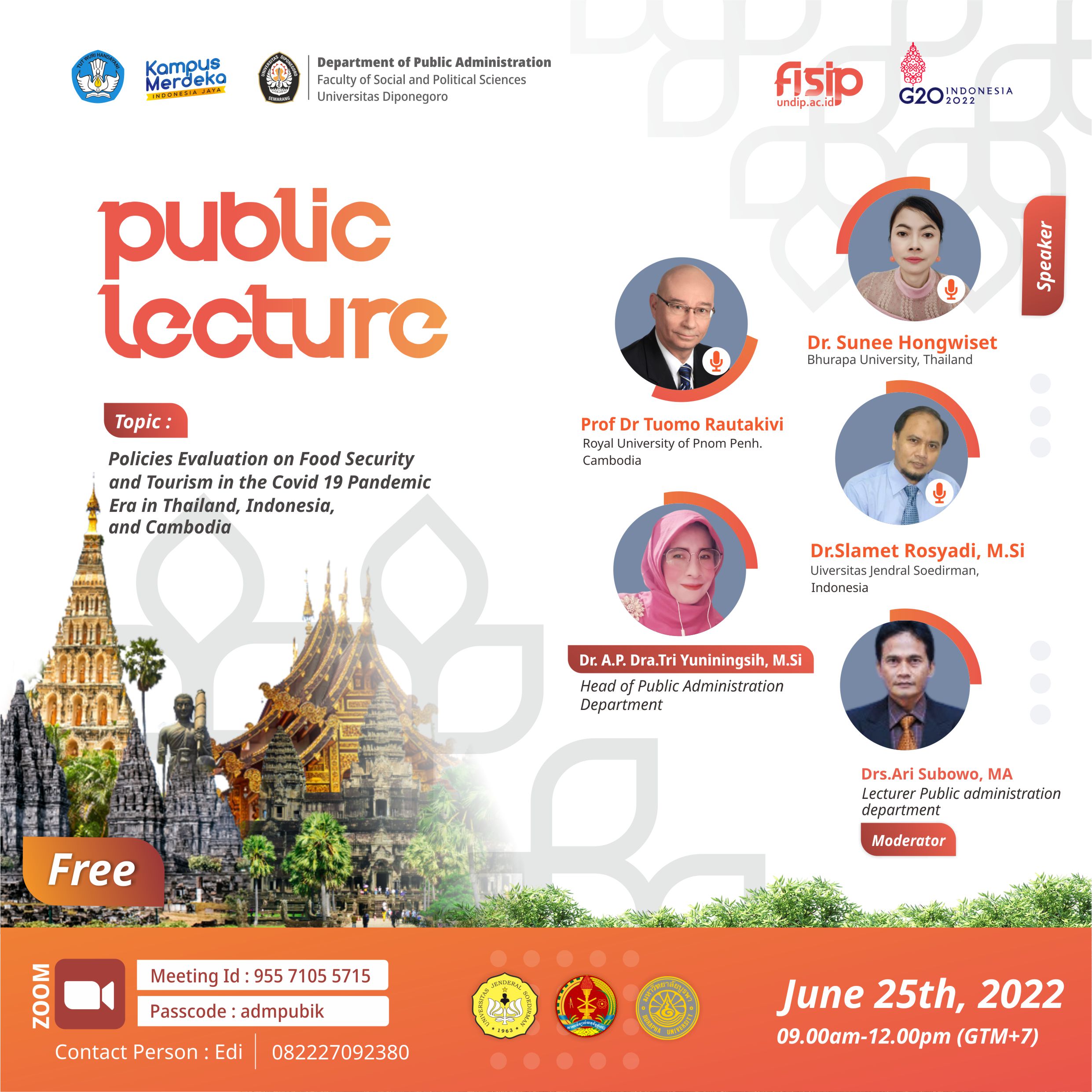 Public lecture : Policies Evaluation on Food Security and Tourism in the Covid 19 Pandemic Era in Thailand, Indonesia, and Cambodia